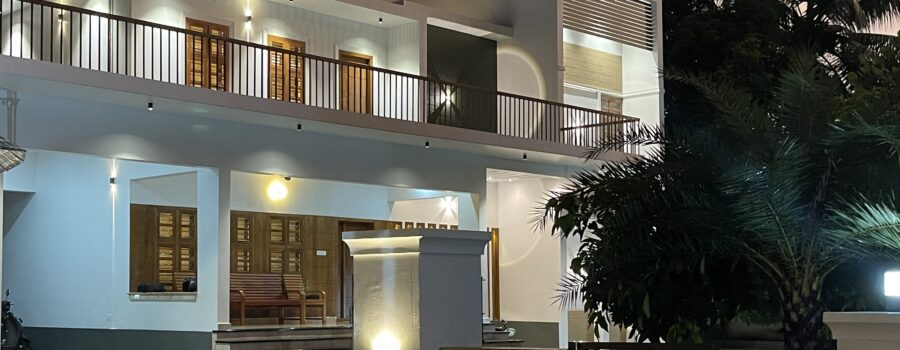 Mr. Fisal’s residence in Kottakkal is a seamless blend of contemporary architecture and natural warmth. The home captures elegance through open spaces, rich wooden tones, and a soft play of natural and artificial lighting that gives each room a serene character.